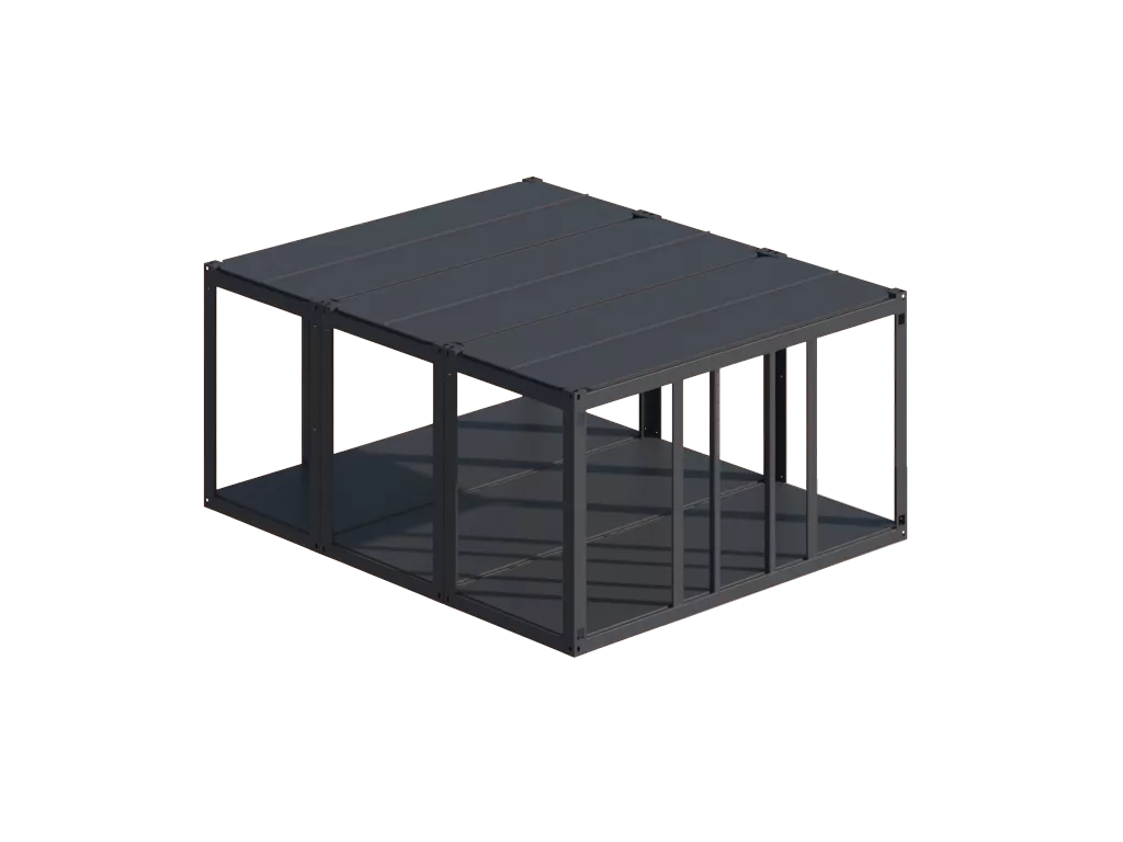 - металлокаркас из строительных конструкций типа Prefab, с утепленными рамами и угловыми стойками;